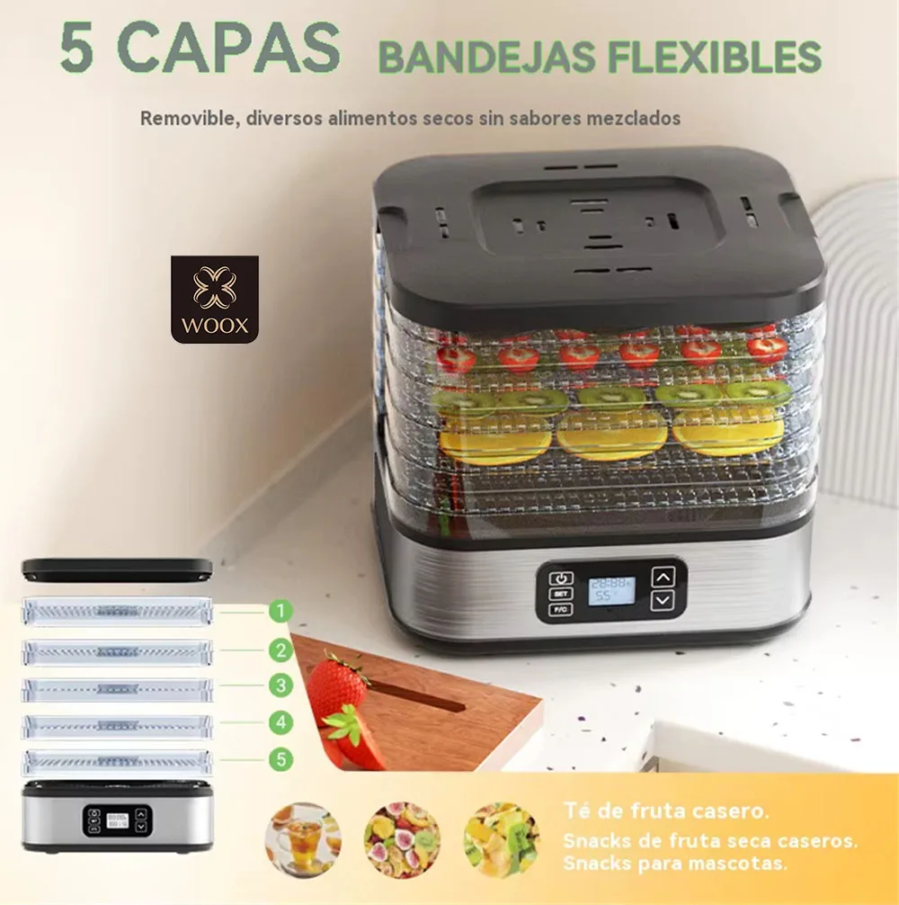 Voedseldroger met 5 bakjes, voor fruit en dierenvlees, met 270W digitale timer en luchtcirculatie
