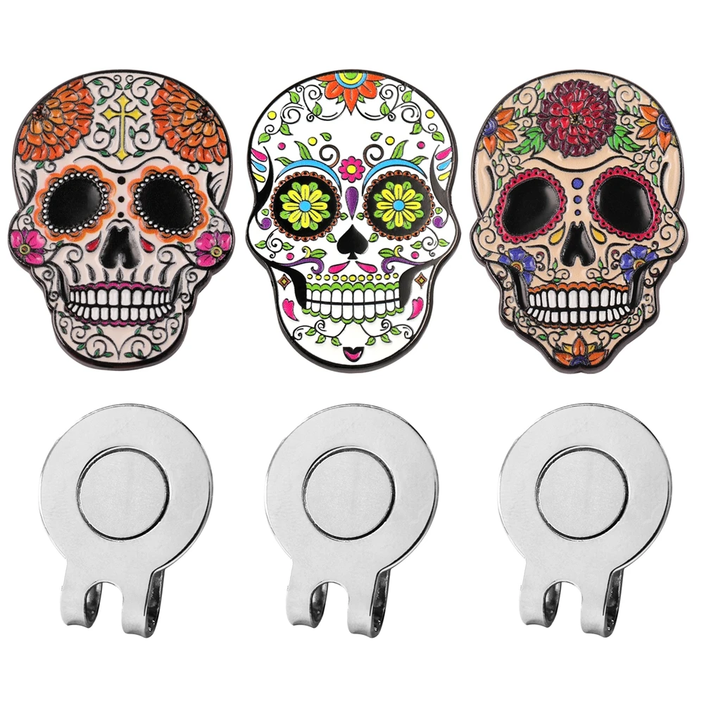 Premium golfbalmarkering met een standaard magnetische hoedclip, schedel golfbalmarkering hoedclip voor heren dames