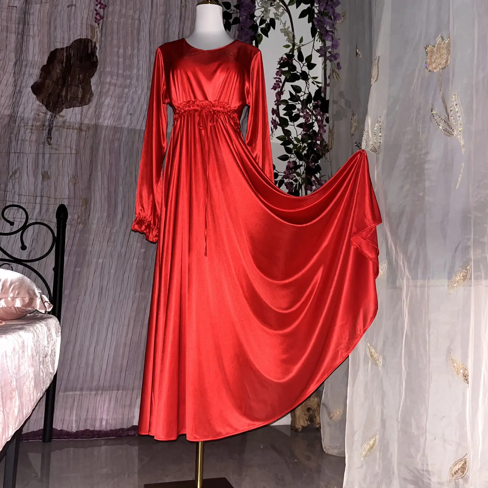 Dames sexy slaapjas zijdeachtig aanvoelend zacht glanzend elastische taille lange jurk fetish heren ijszijde losse maxi-jurk plus maat