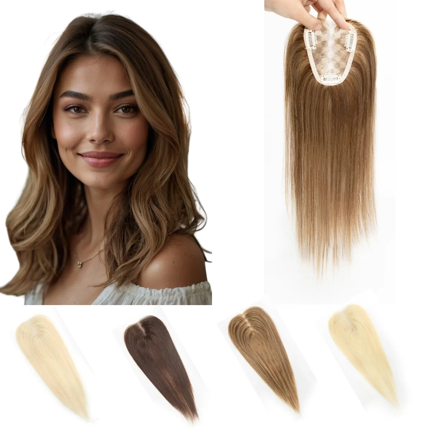 TUW25 Mono Topper 100% Echt Menselijk Haar, Natuurlijk Uitziende Haarstukjes voor Vrouwen met Dunner wordend Haar - Gemakkelijk te dragen Haarstukje van Echt Haar