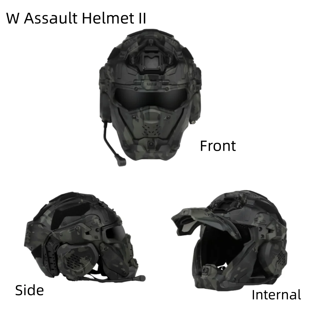 W-Ronin Assault Helm II Snelle Helm Tactische Ingebouwde Communicatie Anti-condens Fan Flip Masker Airsoft Jachtuitrusting