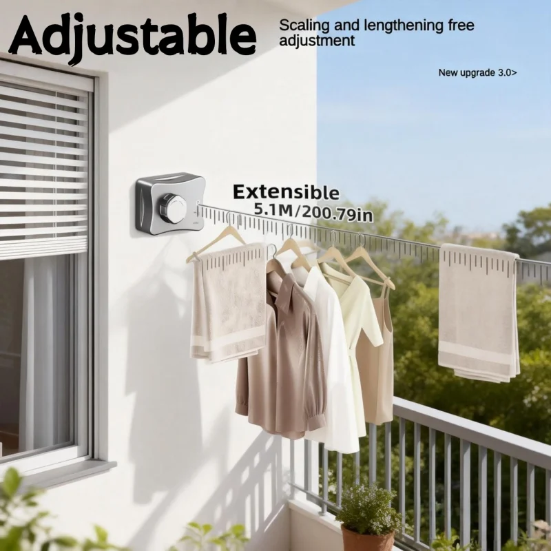 2026 Nieuwe 5,1 Meter Intrekbare Waslijn Binnen/Buiten RVS Waslijn - Ruimtebesparende Kledingdroogrek