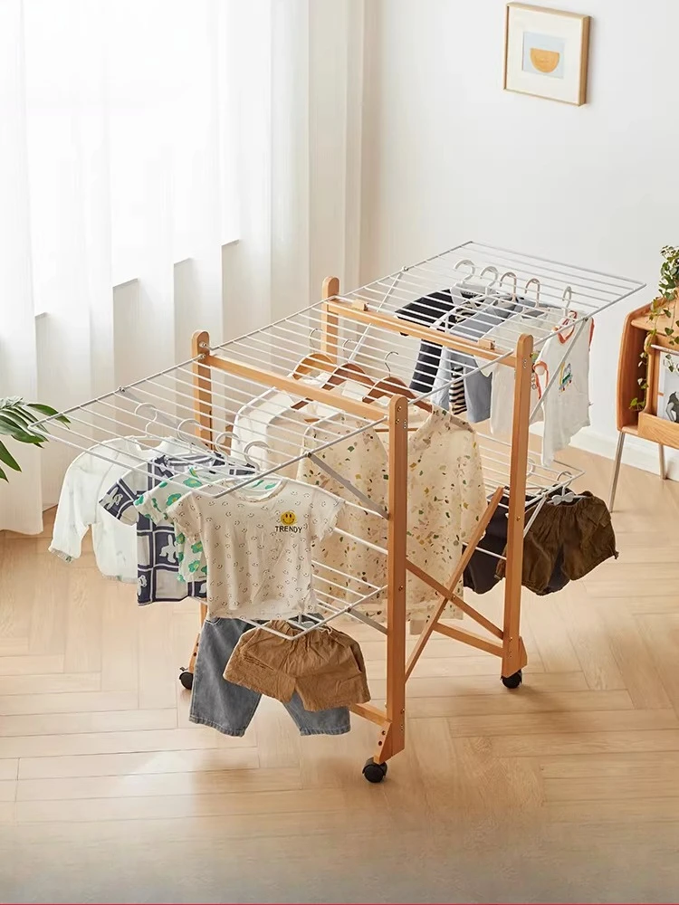 Opvouwbaar houten wasrek voor balkon, slaapkamer, draagbaar wasrek met verplaatsbaar ontwerp, voor thuisgebruik