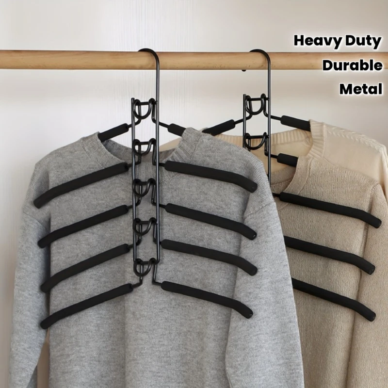 1pc 5-laags robuuste ruimtebesparende kleerhangers 5-in-1 meerlaags metaal met antislip schuimvulling ijzeren jassen truien pakken