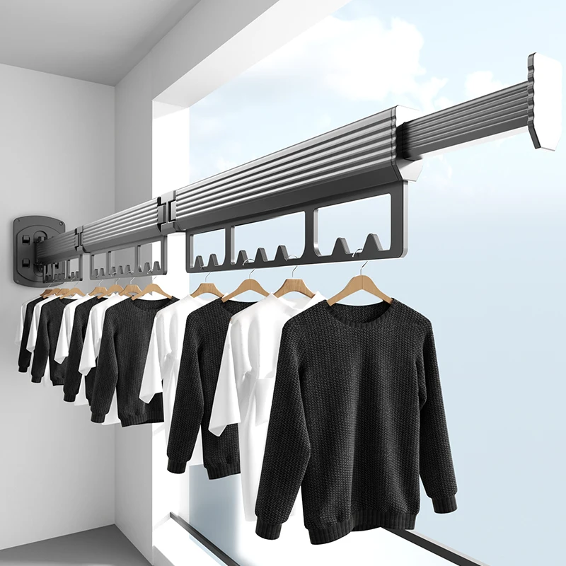 Opvouwbare onzichtbare kleerhanger, puntvrij, intrekbaar, kamerhoek, buitenbalkon, metalen eenvoud Handige kledingstaaf