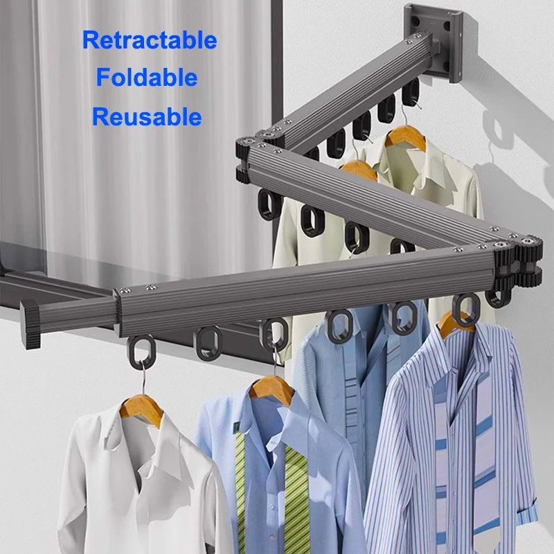 Wandmontage Opvouwbaar Droogrek met Sliphooks 1/2/3-voudig Intrekbare Verlenging Wasruimtebesparend voor Thuis Balkon