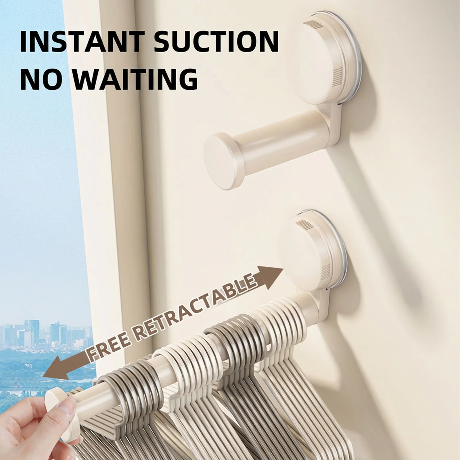 Zuignap muurhaken voor kleding Verstelbare telescopische hanger Geen boor Hangende organizer voor badkamer Balkonopslag