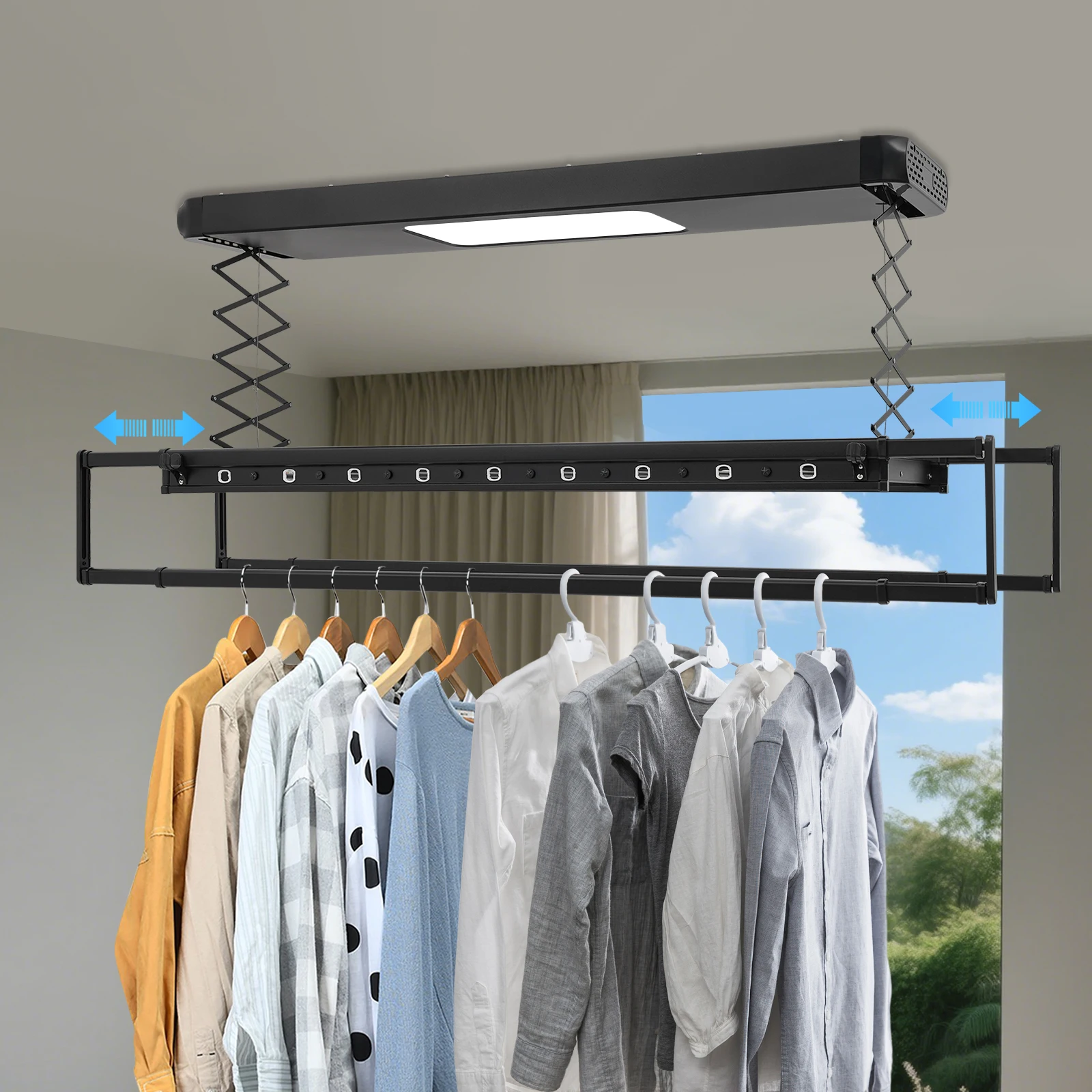 Elektrisch droogrek met lichtwand en plafondwaslijn, opvouwbaar droogrek met afstandsbediening