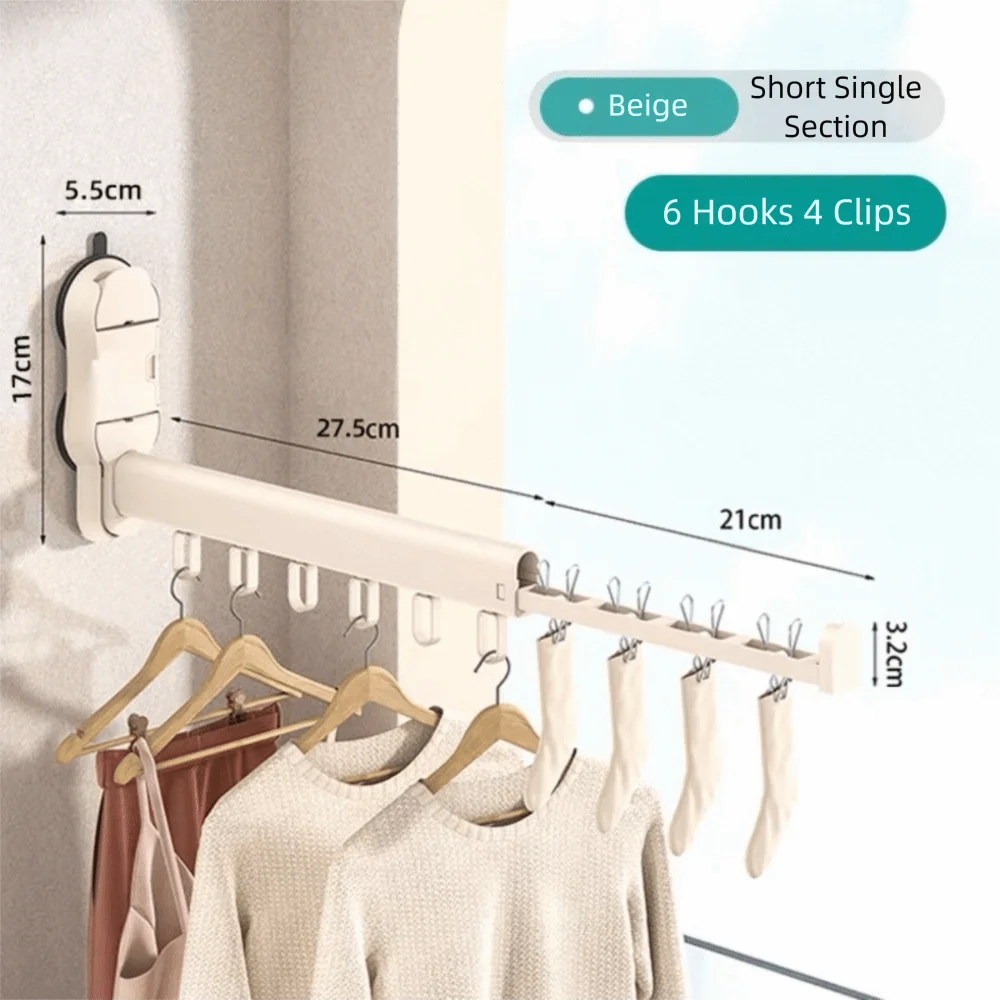 Opvouwbaar opvouwbaar droogrek Aluminium zuignap Kleerhanger Staaf Wandmontage Ruimtebesparende washanger Reizen