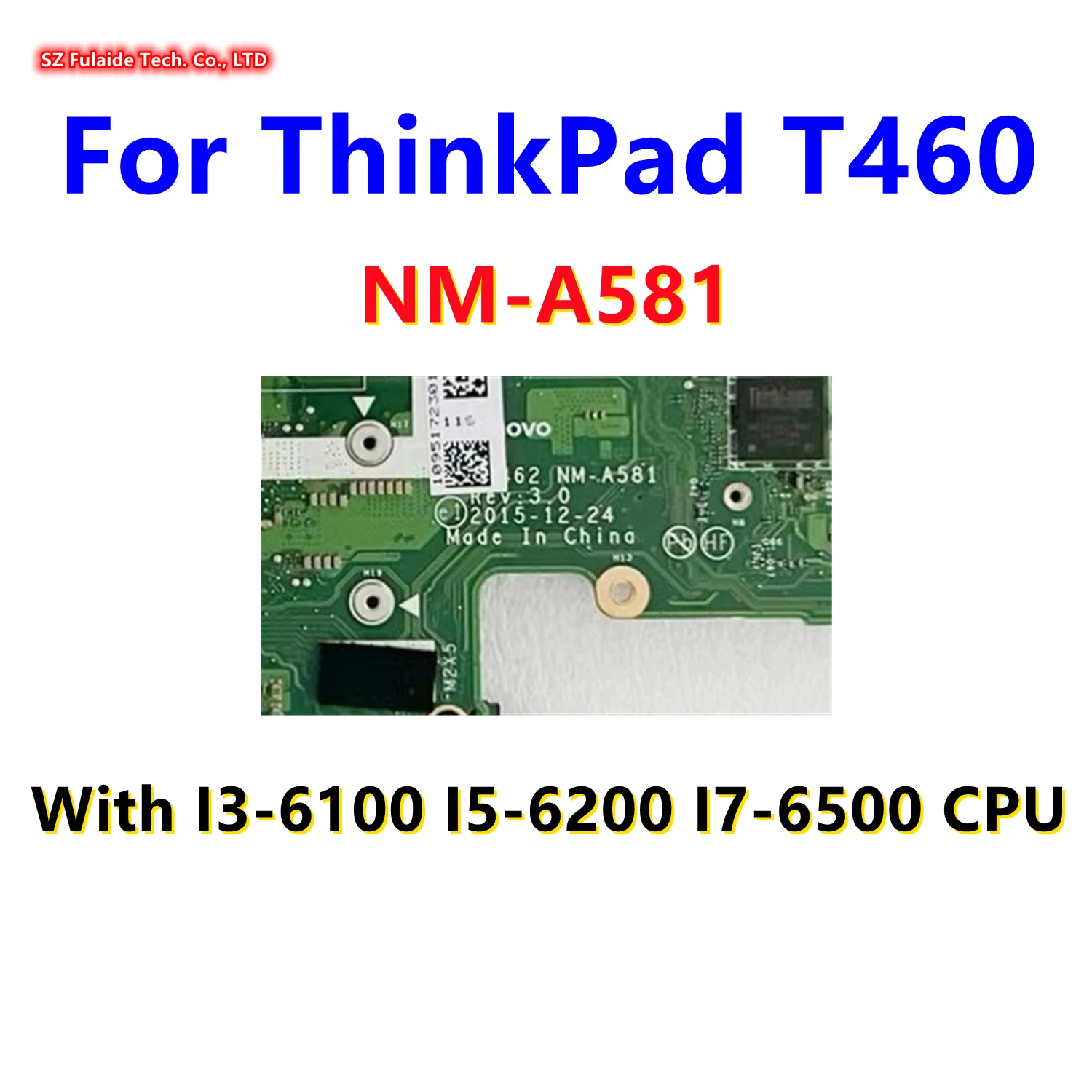 NM-A581 Voor Lenovo ThinkPad T460 Laptop Moederbord I3-6100 I5-6200 I5-6300 I7-6600 I7-6500 CPU UMA 01AW324 01AW320 01AW336
