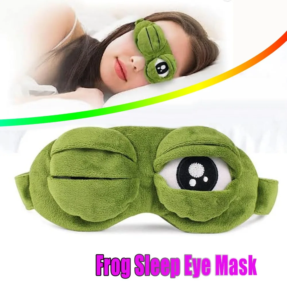 Slaapmasker 3D Cartoon Kikker Groen Grote Ogen Mooie Ademende Schaduwende Oogmasker Huidvriendelijke Slaapblinddoek voor Reizen naar Huis