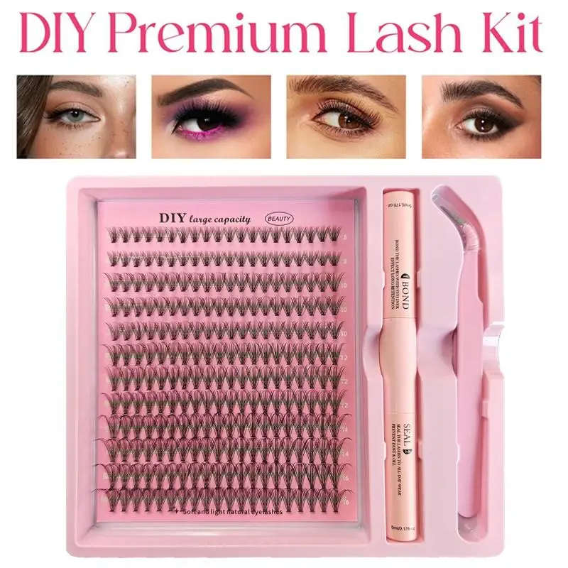 Wimperverlenging Cluster DIY Lash Clusters Mix Stijlen Wimper Clusters Individuele Zachte Band Lash Kit Met Bond en Seal Pincet