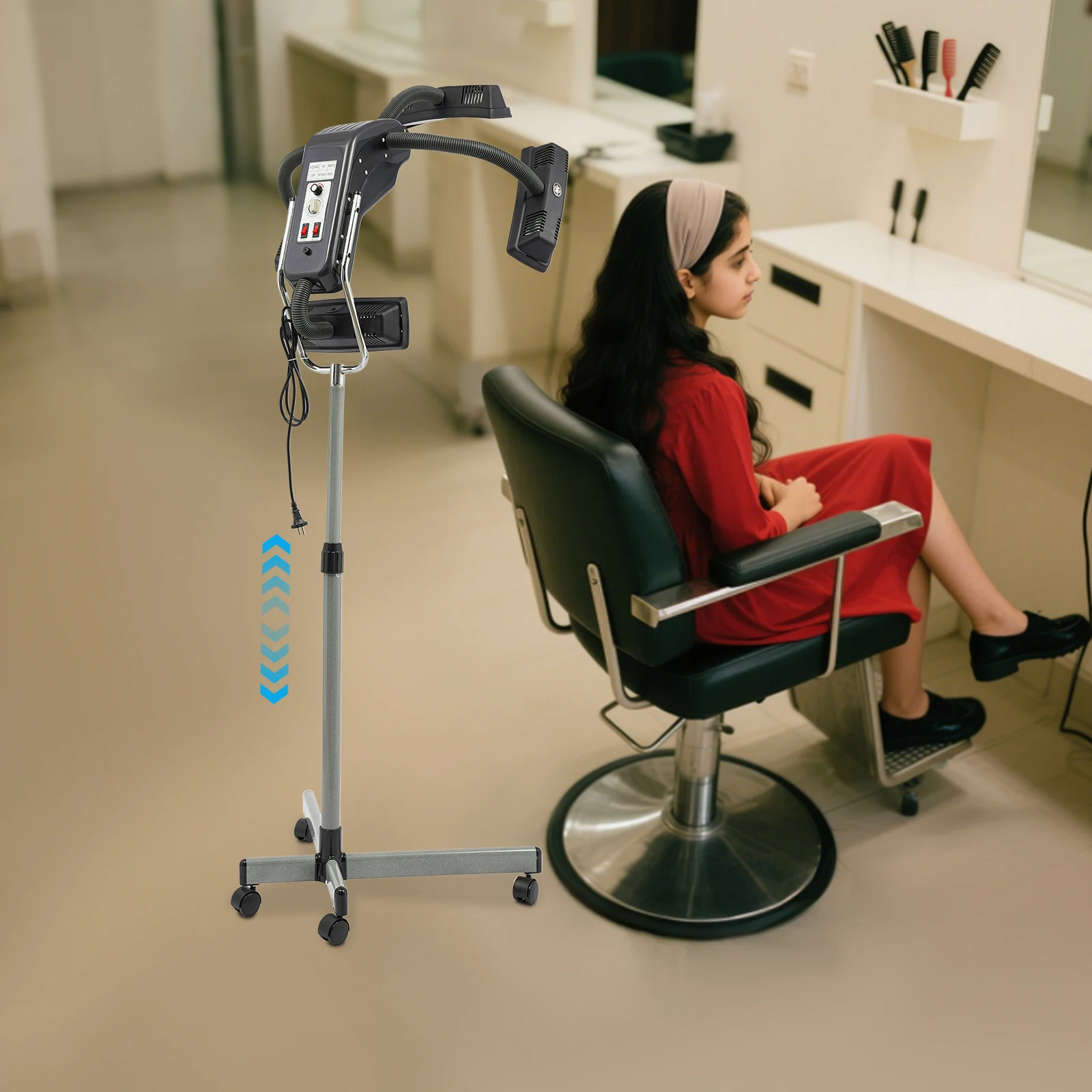 Professionele salon haardroogmachine, 5-richtingsverwarming 1500 W sneldrogend gereedschap, in hoogte verstelbaar en temperatuur, mobiele wielen