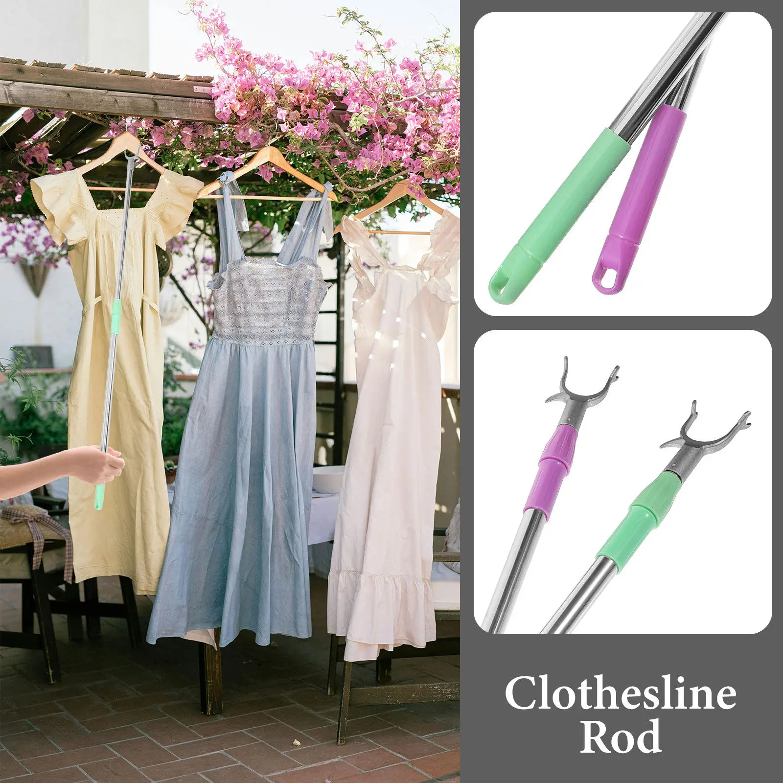 2 stuks telescopische kledingvork van roestvrij staal, uitschuifbare kledinghangpaal voor kast, balkon, droogrek, reach pole