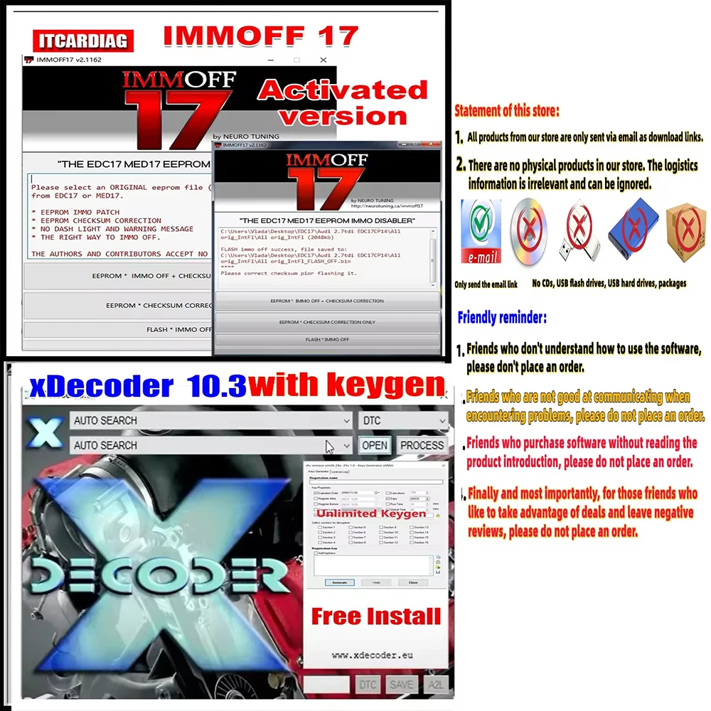 XDecoder 10.3 IMMO OFF 17 IMMOFF 17 Software Activa Vers Khu EDC 17 17 Immo Off Ecu EEPROM IMMO PATCH Correc de controle par