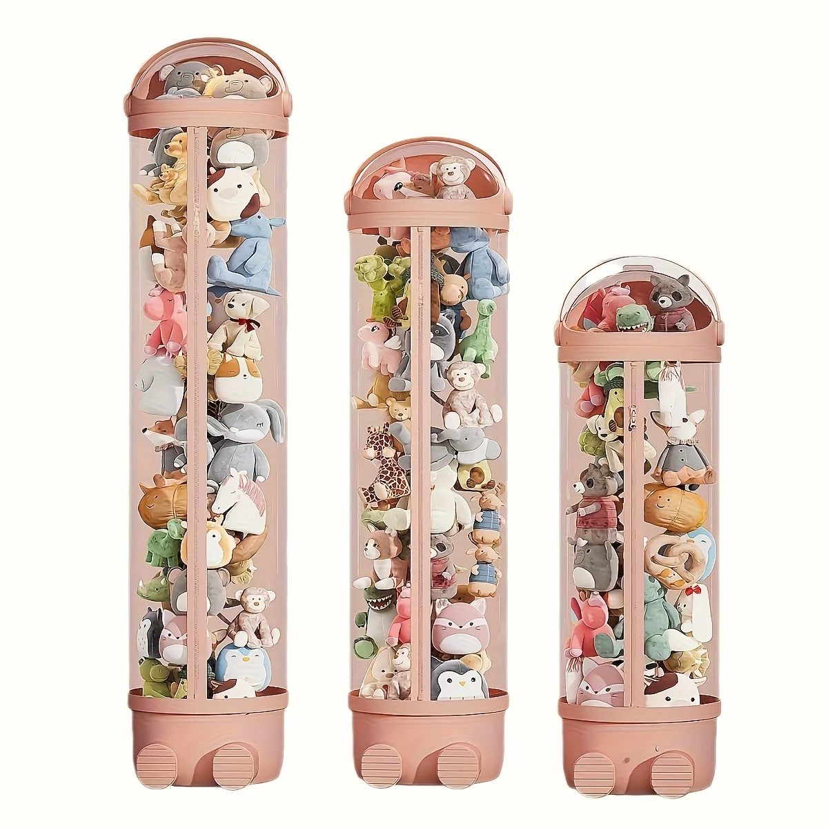 Hoge ritssluiting, zware, doorzichtige opbergkuip, draagbare cilindrische organizer voor poppen, actiefiguren en pluche teddyberen, kunststof materiaal