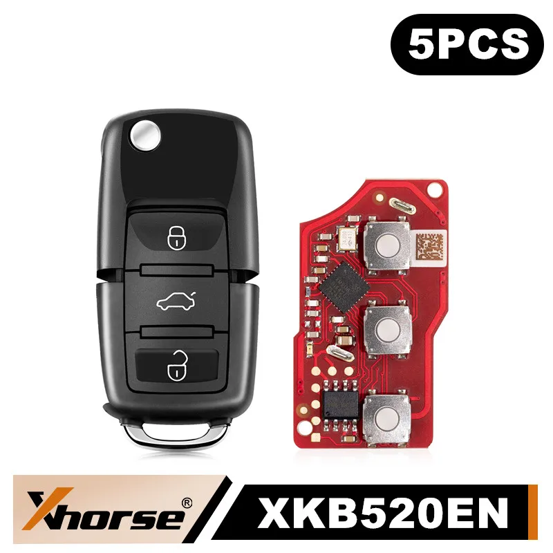 5PCS Xhorse XKB520EN Tweede Generatie Vervangen door XKB501EN Draad Afstandsbediening Sleutel voor VW B5 Flip 3 Knoppen Ondersteunt Draadloos Programmeren