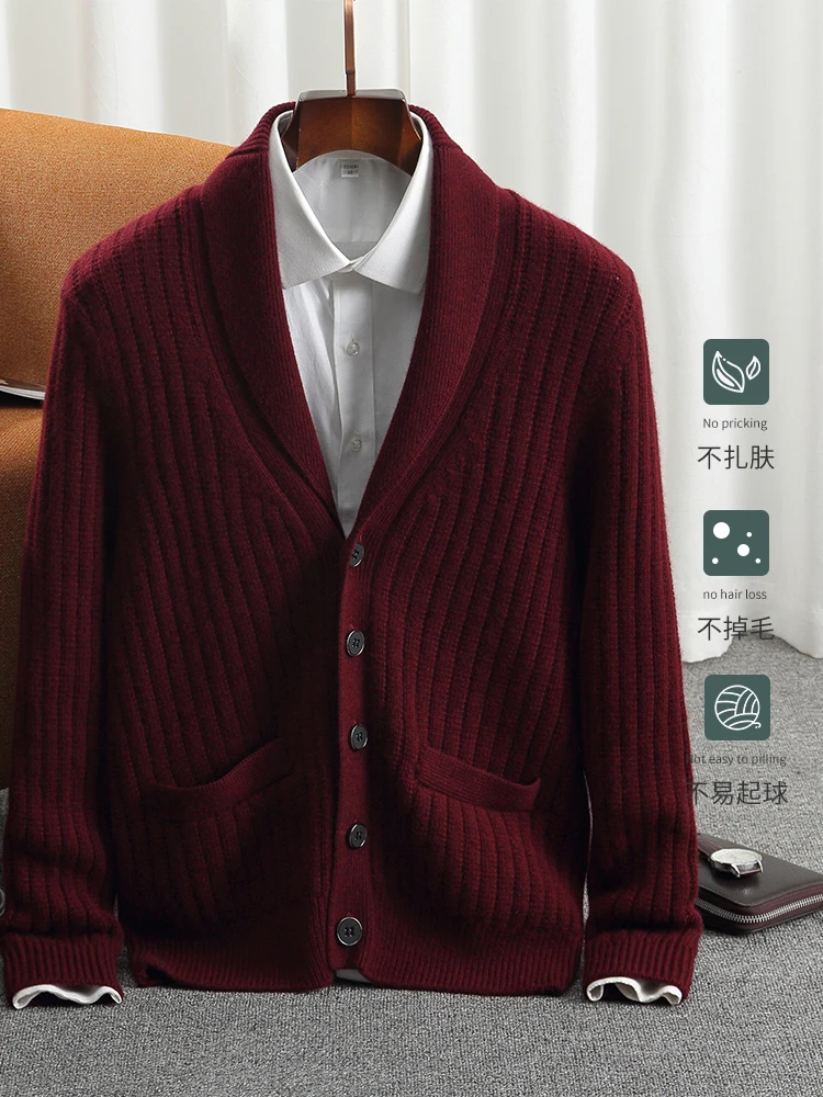 Modieuze en sierlijke dikke winter nieuwe warme herenvest kasjmier jas open gebreide losse trui