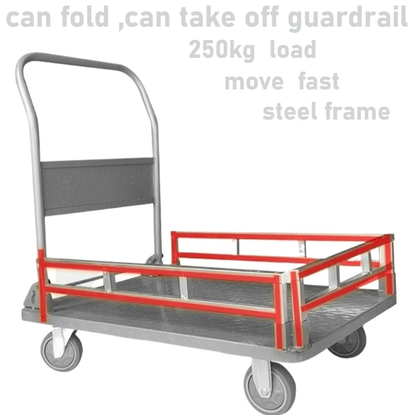 Trekwagen met stalen plaat Opvouwbare flatbed-truck Vierwielige aanhangwagen Duwwagen Stille trolley Pallet verdikt