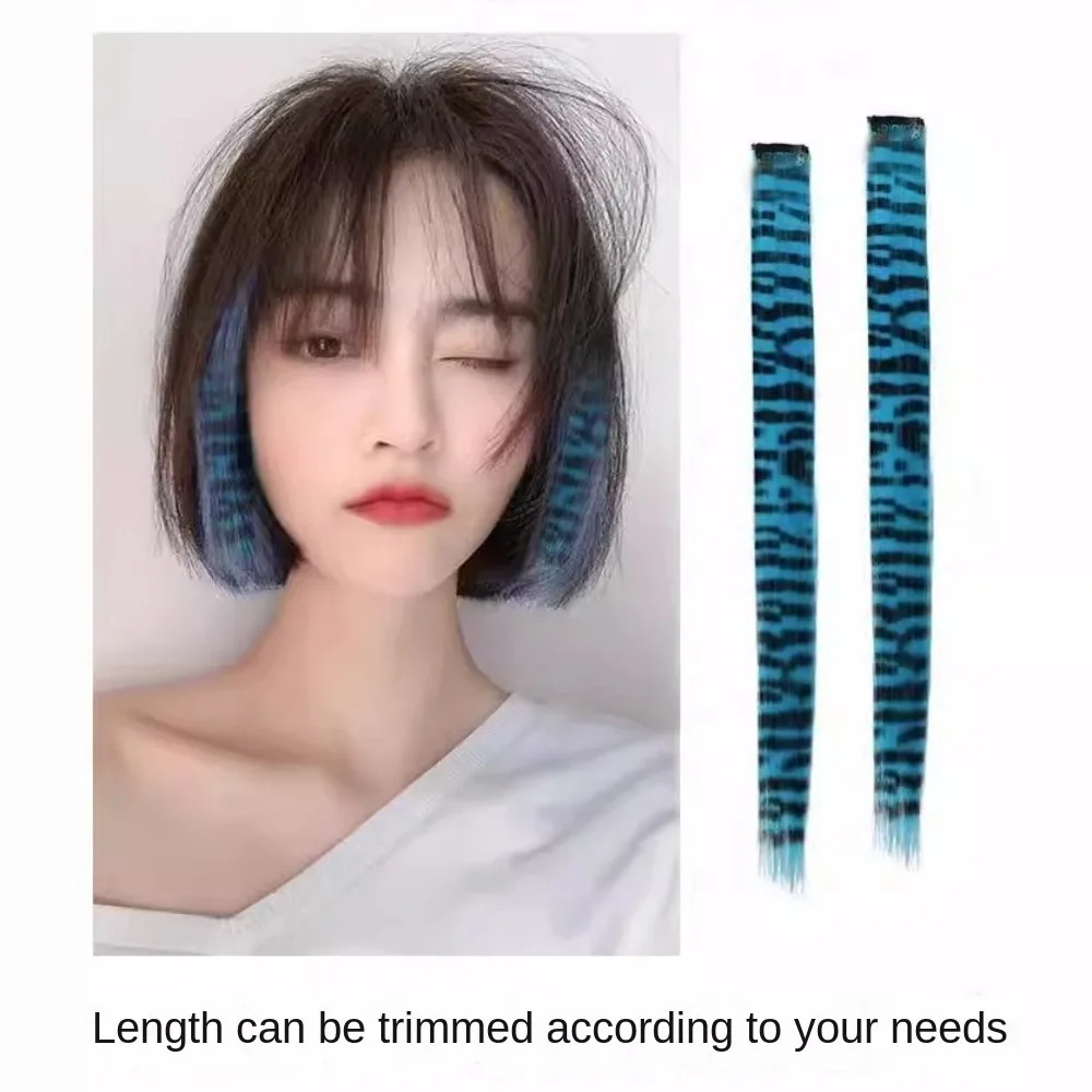 Kerststreep bedrukte clip-in haarextensies Synthetisch steil haar Hoogtepunten 18 inch Kleurrijke pruik Haarstukjes Meisjes
