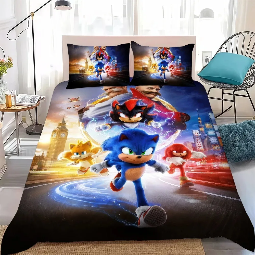 De Film H-Egel S-SonicES 3 Dekbedovertrek Set Zachte Wassen Katoenen Bed 2/3 Stuks Zomer Comfortabele Studentenslaapzaal Thuis Beddengoed