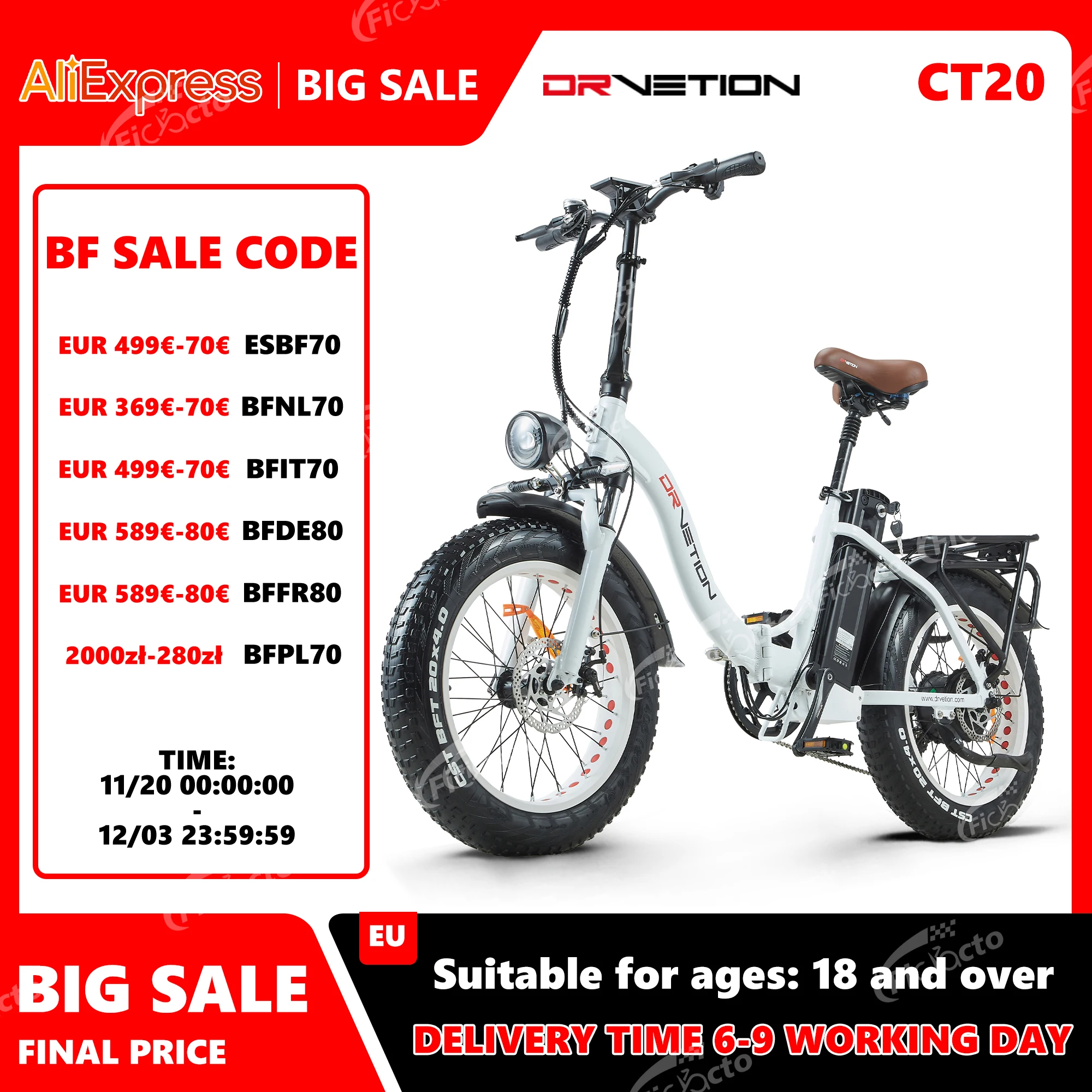 DRVETION CT20 Opvouwbare elektrische stadsfiets voor volwassenen 750W elektrische fiets 48V 15AH/20AH en 20 inch dikke banden ebike 7 versnellingen