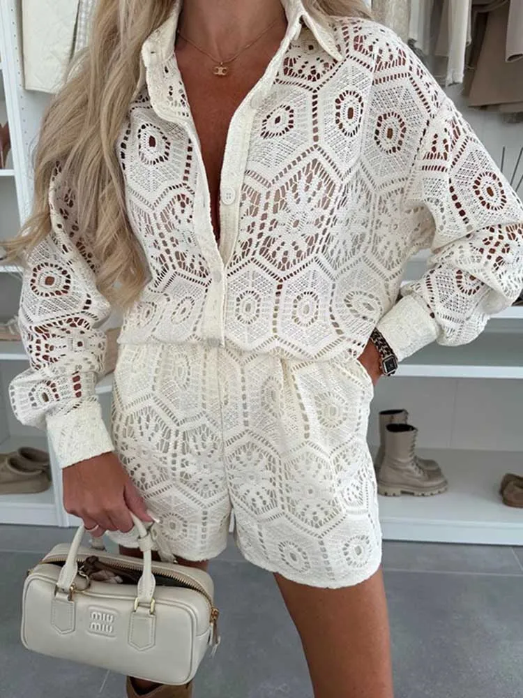 Shirt en shorts set vrouwen uitgehold sexy kanten mouw top streetwear zomer 2-delige shorts set groothandel dropshipping