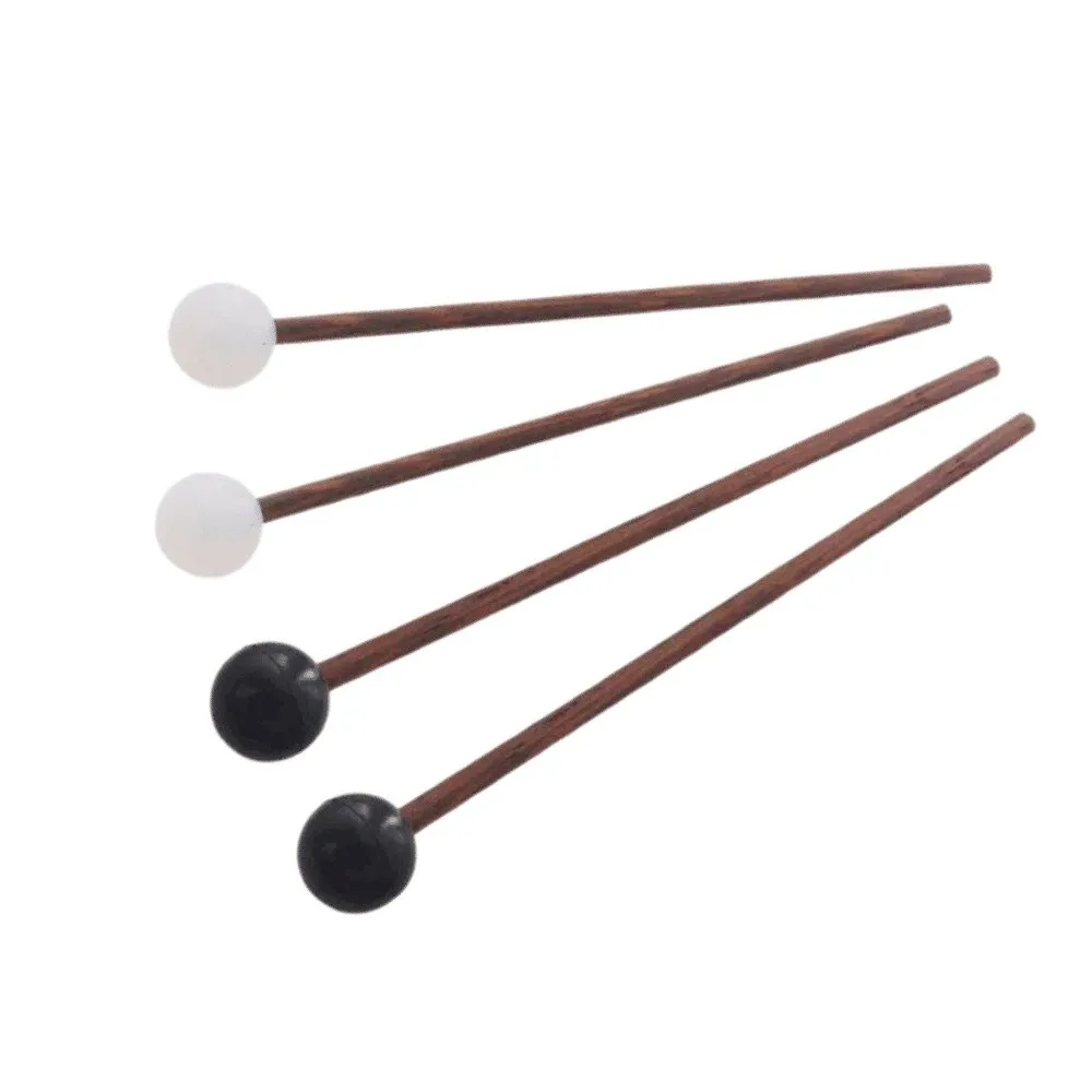 4 stuks houten handvat Tong Drum Mallet 17 cm/6,7 inch lengte Zwart en wit Rubberen drumstok Drumoefenhamers