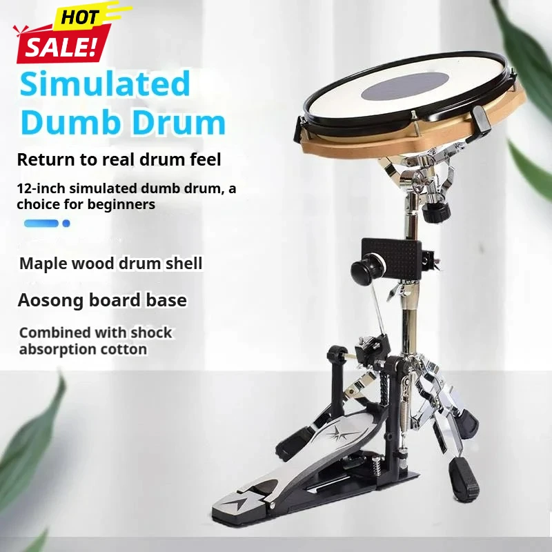 12Inch Realistische Drumstel Pad Oefen Verbeter Drumstel Voor Beginners Gezandstraalde Mute Skin Stevige Stand Voor Percussie Training