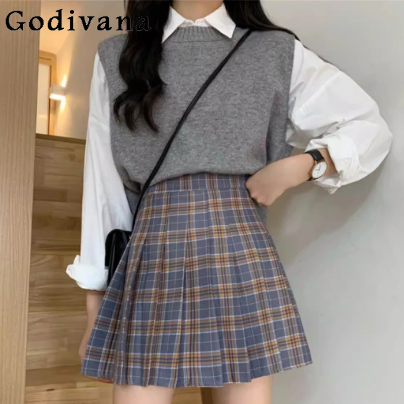 Plus Size Nieuwe Contrast Kant Geruite Plooirok Vintage Sexy Skater Kleding Harajuku Gothic Punk Engeland Stijl Y2k Rok