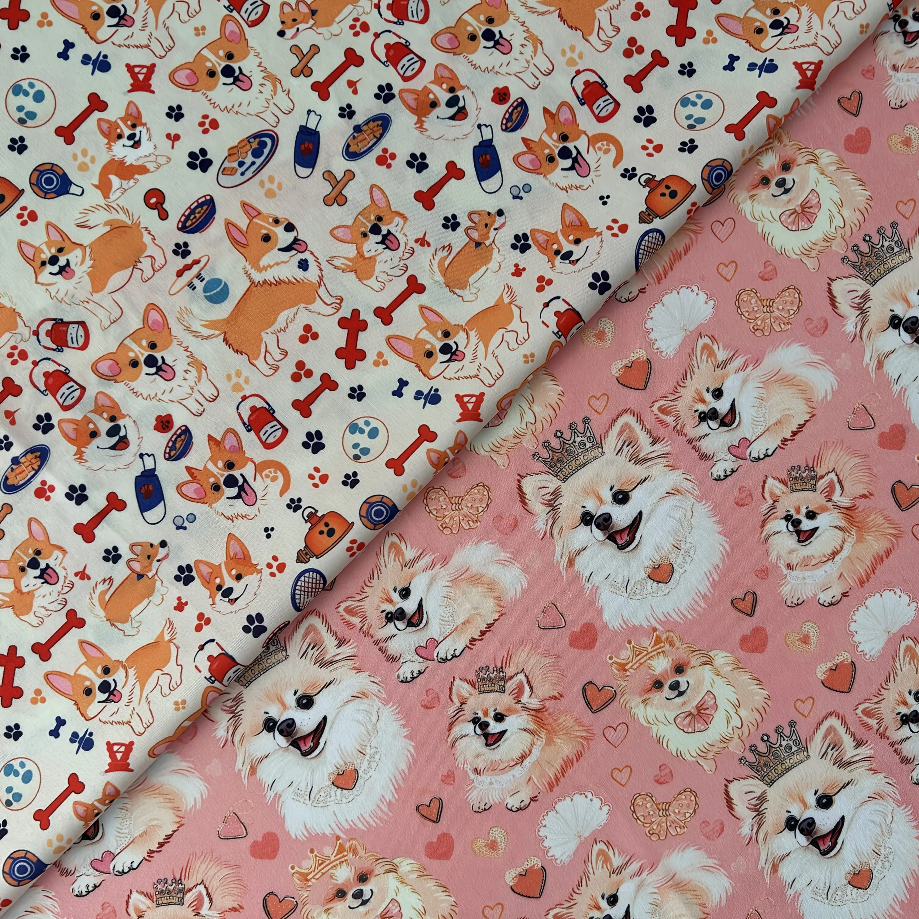 1pc, Puppy-serie bedrukte stof, schattige corgi-hond × prachtige Pommeren hond, handnaaistof, 100% polyestervezel.