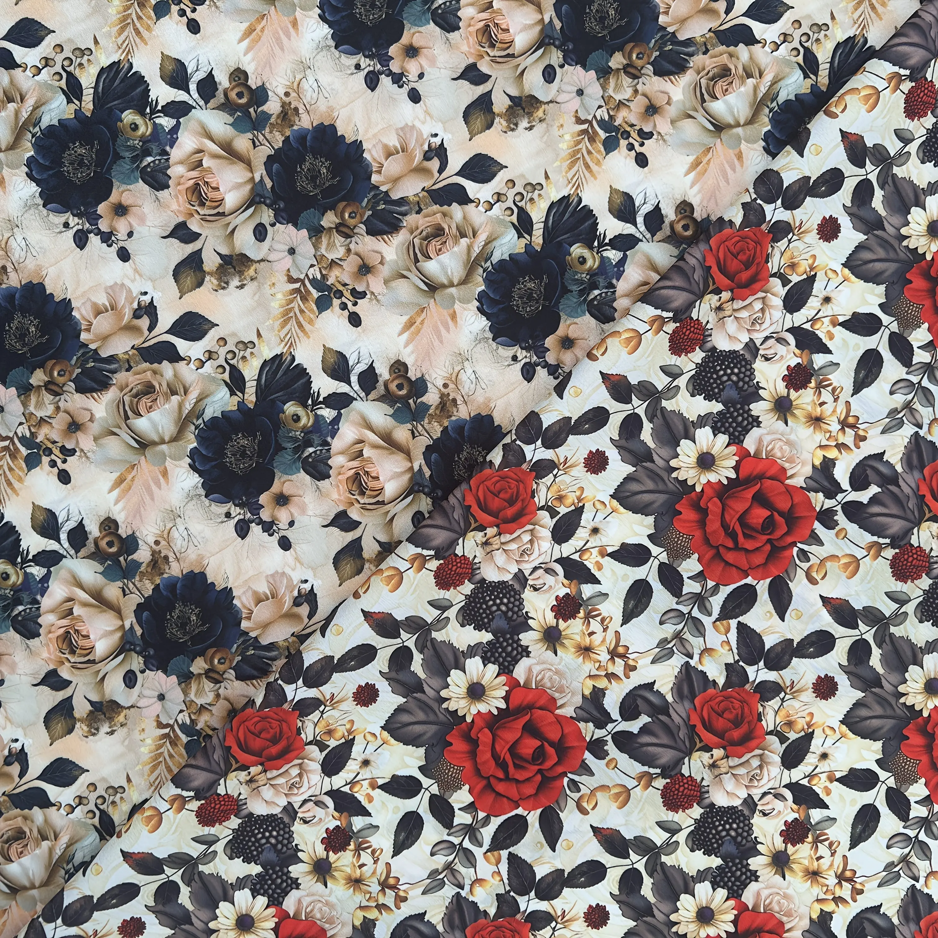 1pc, retro rozenstof in paleisstijl, rode rozen zijn nobel, blauwe bloemen zijn mysterieus, handgemaakte stof, 100% polyestervezel.