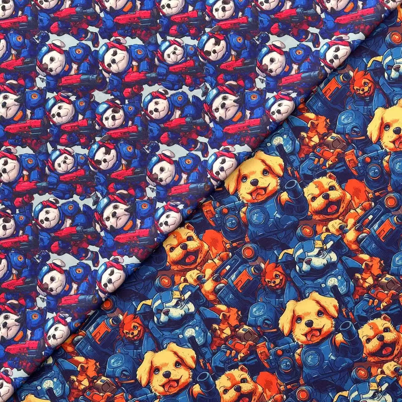 1pc, Hond mecha cartoon zoet patroon stof, creëren een technologische en schattige sfeer, met de hand genaaid stof, 100% polyester