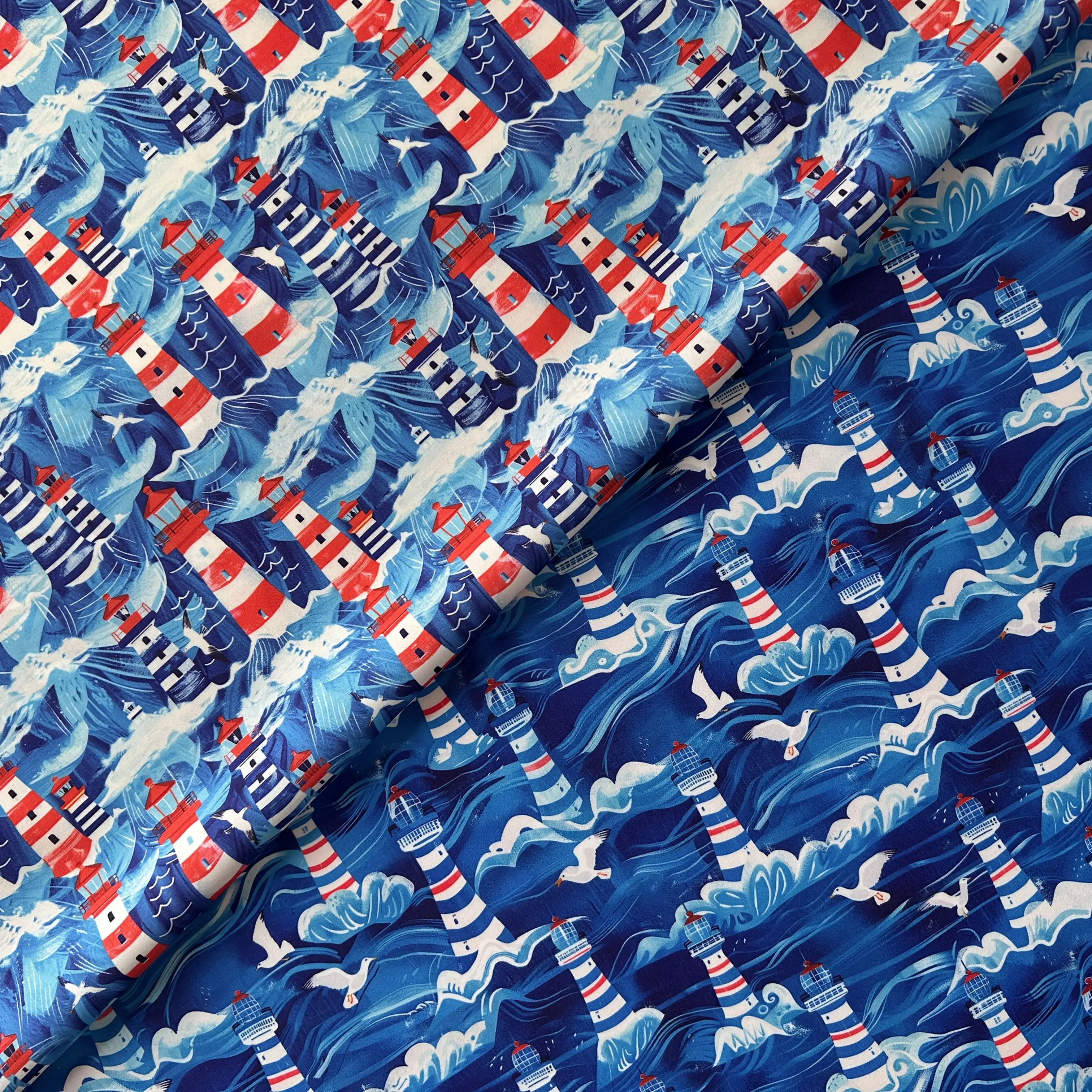1 st, Storm Ocean Lighthouse bedrukte stof, de vastheid van de zee, met de hand genaaid stof, 100% polyestervezel.