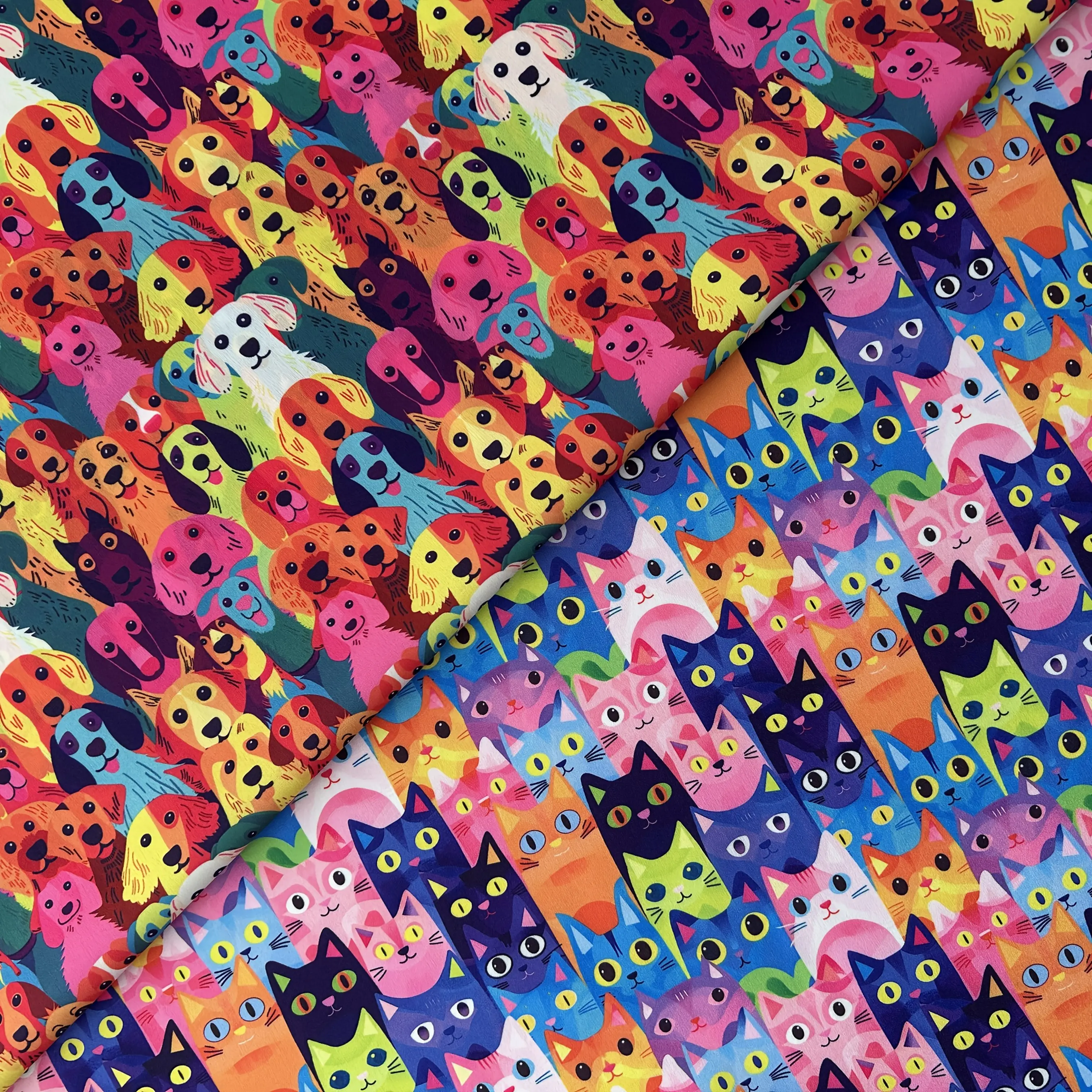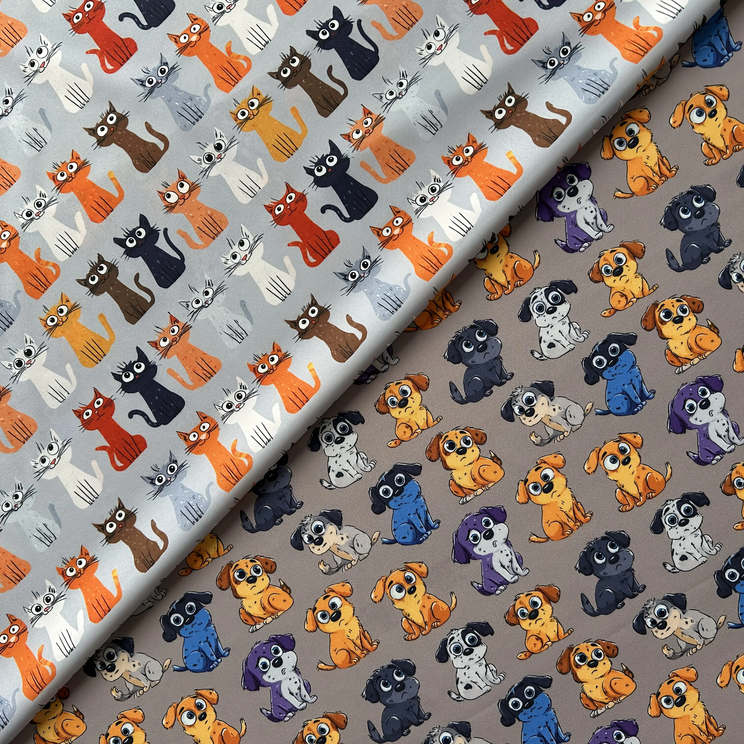 1pc, katten- en hondenkleurige bedrukte stof, schattig en levendig, vrolijke sfeer, met de hand genaaid stof, 100% polyestervezel.