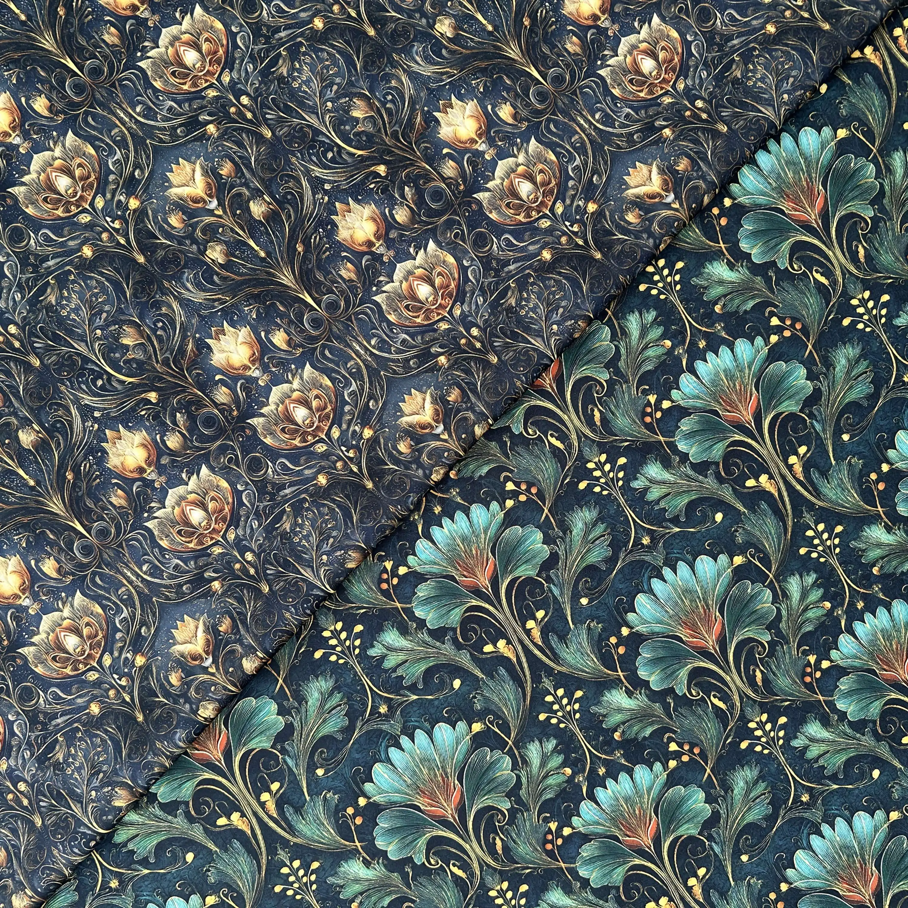 1pc, prachtige kunst retro bloemen bedrukte stof presenteert klassieke elegantie en luxe. 100% polyestervezel.