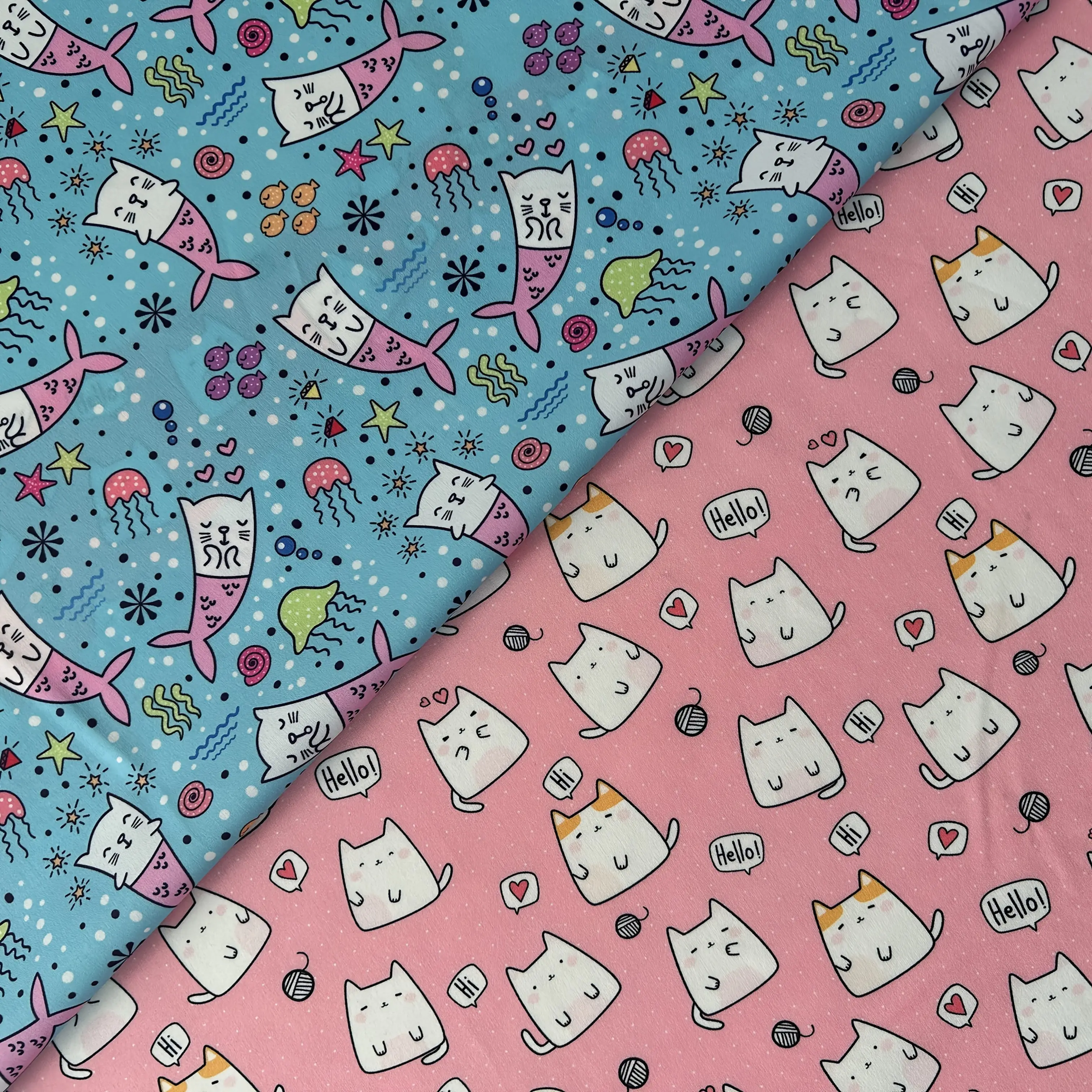 1 stuk, zeemeerminkat schattige bedrukte stof, zacht, comfortabel, ademend, geschikt voor verschillende ambachten, 100% polyester stof.