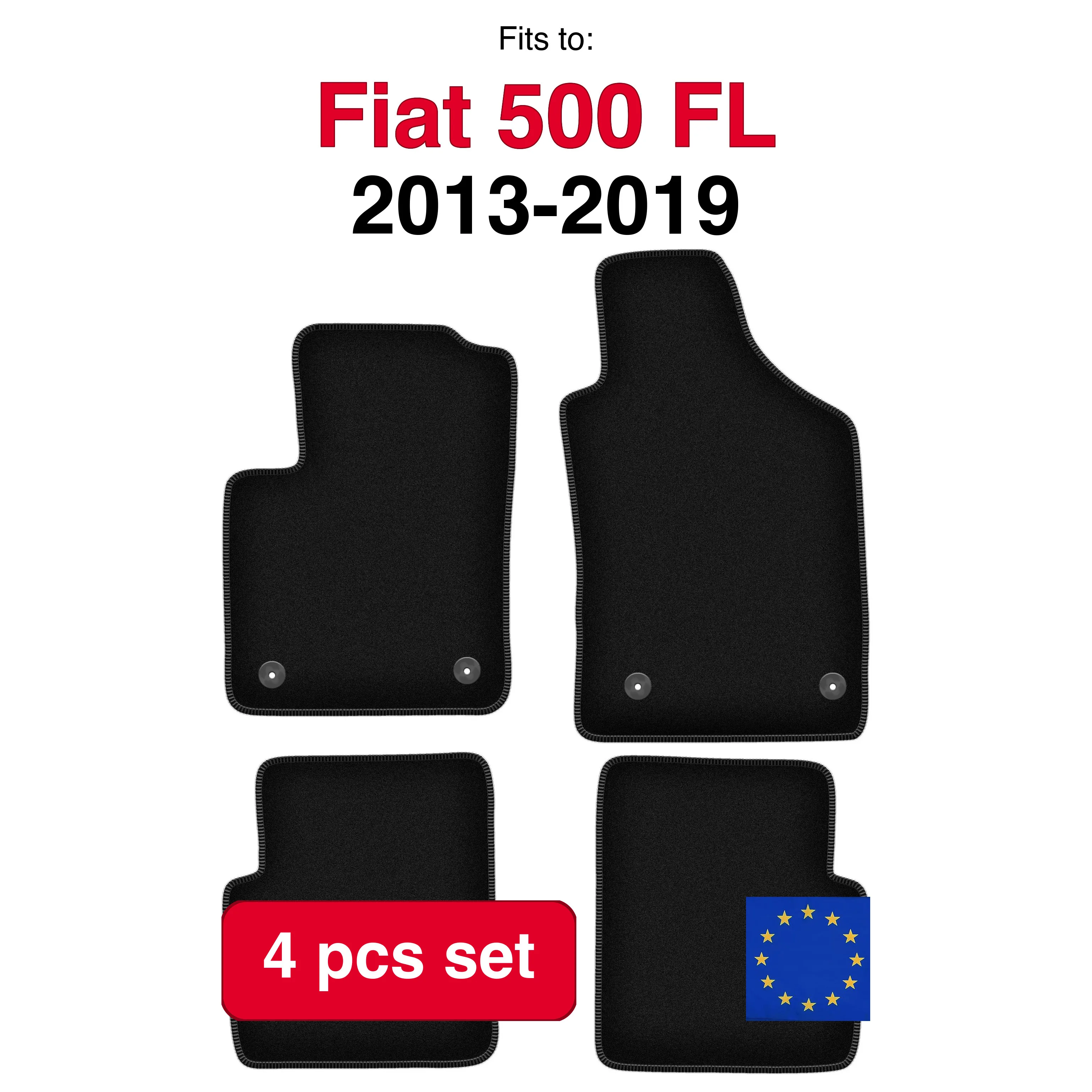 Velours vloerkleedenset voor Fiat 500FL hatchback (2013-2019) -zwart (4 stuks)