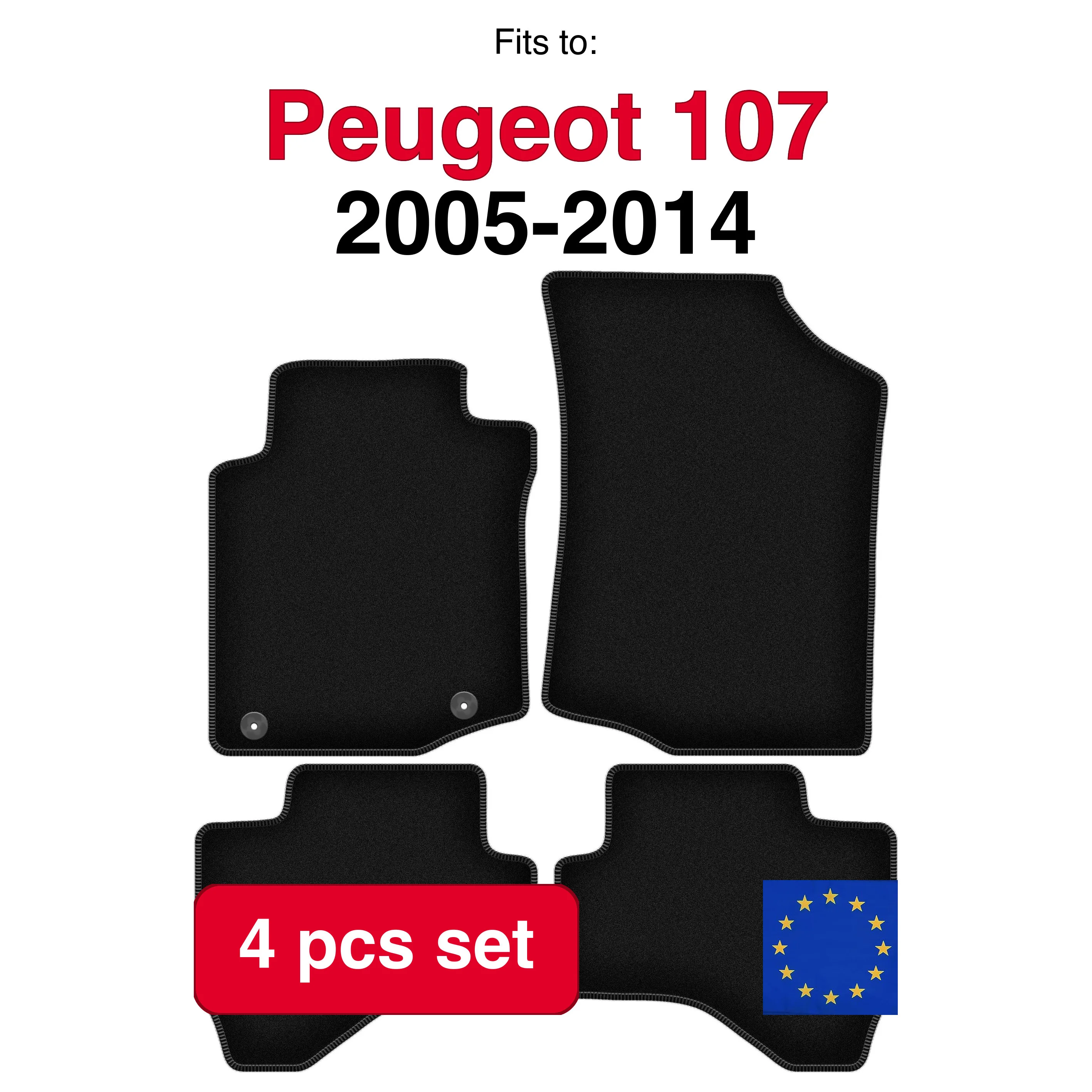 Velours vloerkleedenset voor Peugeot 107 hatchback (2005-2014) -zwart (4 stuks)