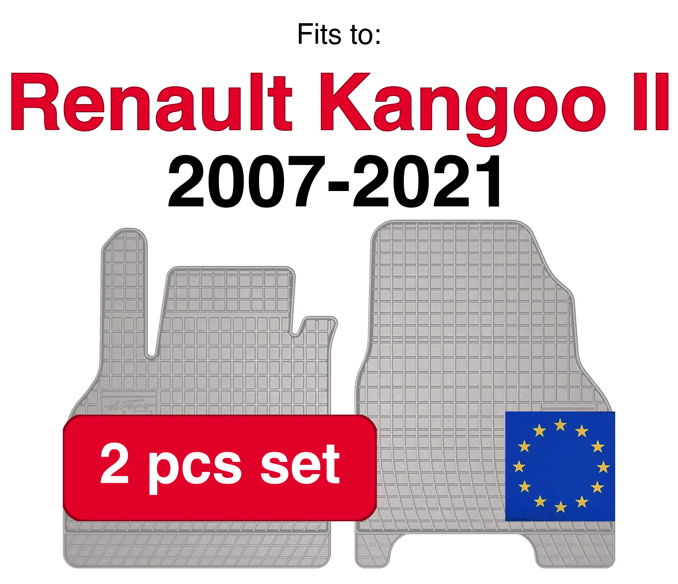 Rubberen automatten voor Renault Kangoo II kombivan, 1e rij (2007-2021) -Grijs, gemonteerd (2 stuks)