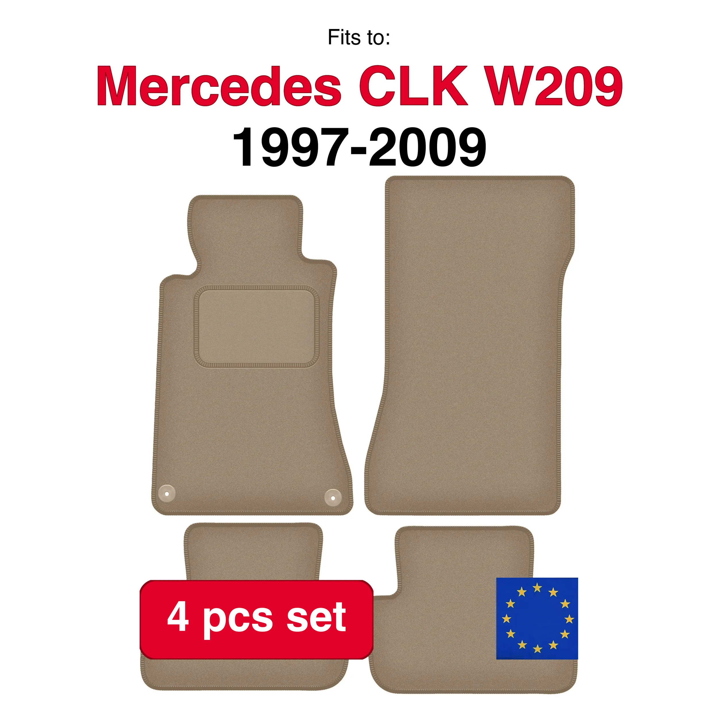 Auto velours matten voor Mercedes CLK W209 Coupe (1997-2009) -beige (4 stuks)