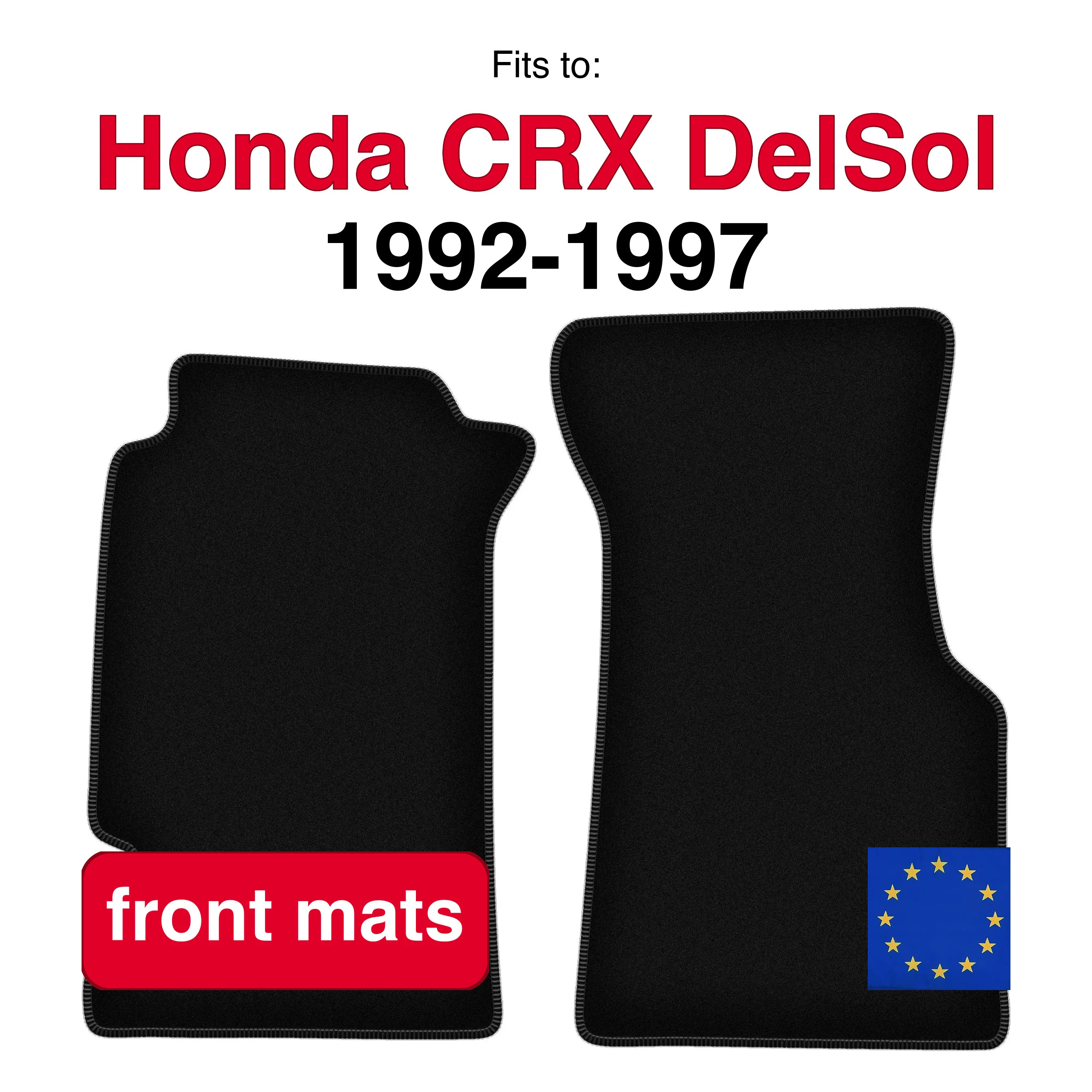 Velours matten voorzijde voor Honda CRX DelSol coupé, cabriolet (1992-1997) -zwart (2 stuks)
