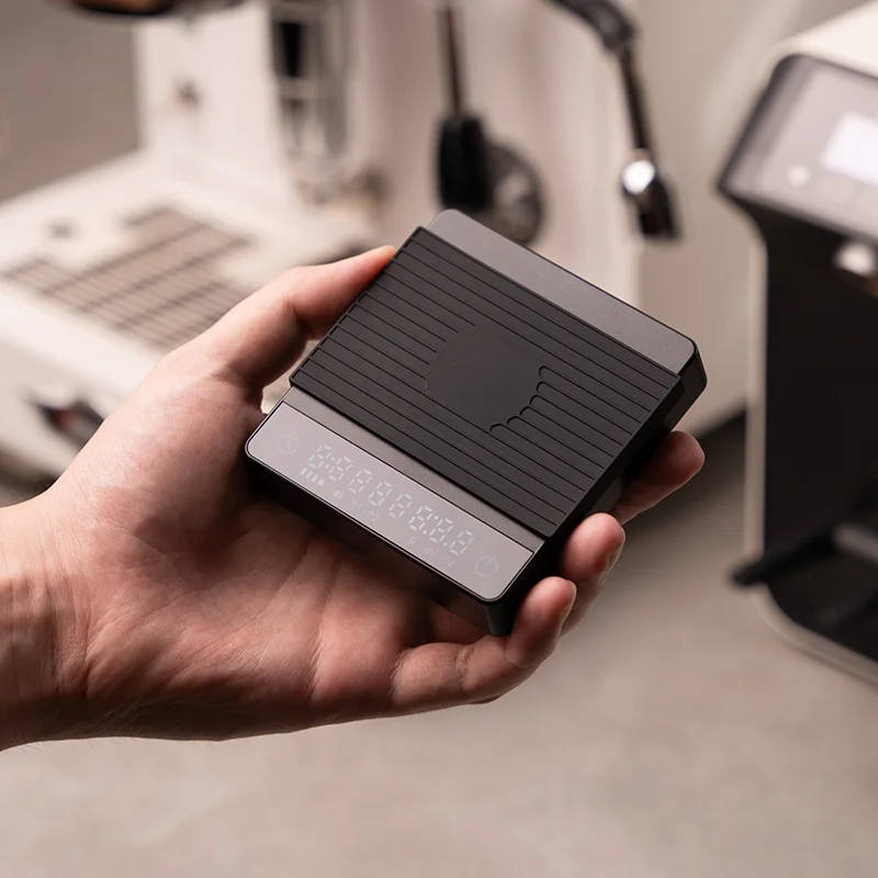 Slimme koffieweegschaal – Eenvoudig te gebruiken digitale espressoweegschaal met timer, automatische tare-functie & doorstroomindicator – Compact en oplaadbaar