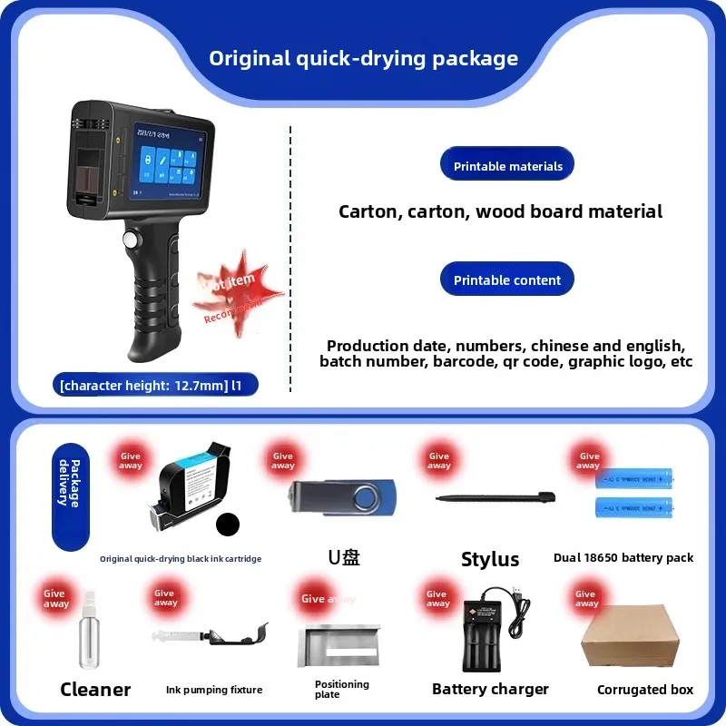 MAKUNJET S9 Handheld Inkjet Printer met 5-inch touchscreen 12,7 mm draagbare markeermachine voor labelbarcode 25 talen EU