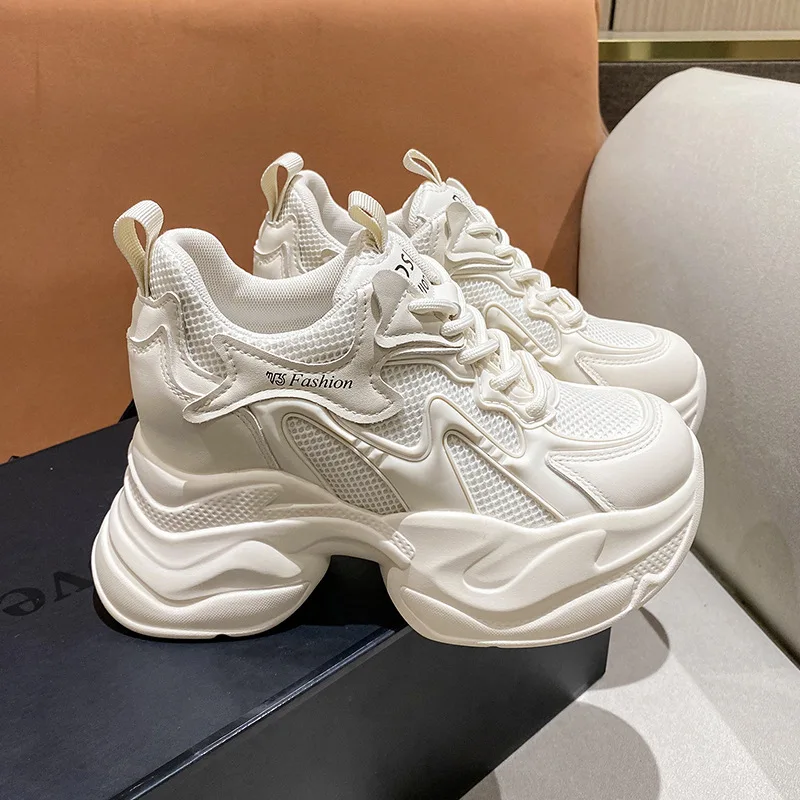 Dames dikke zool hoge mode laarzen herfst nieuwe comfort leren laarzen strass trendy casual hoogteverhoging 10 cm schoenen