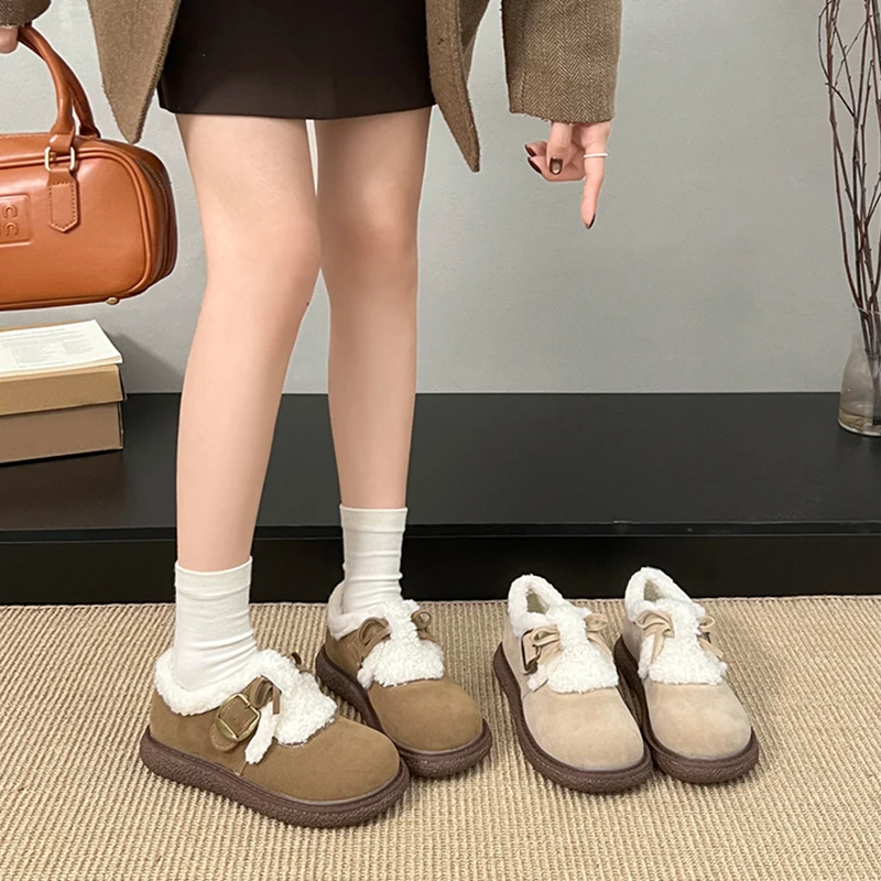 Verhoog de hoogte Winterschoenen Dames Damesschoenen Klompen Platform Boog-Knoop Ronde Neus Jurk Retro Comfortabele Nieuwe Creepers