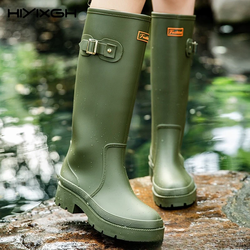 Mode dames hoge waterdichte regenlaarzen antislip slijtvaste rubberlaarzen outdoor lange schacht regen schoenen voor vrouwen