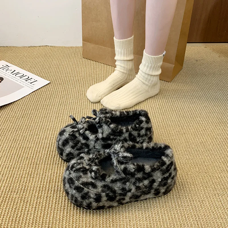 Loafers met bont Zachte damesschoenen Platform Verhoogde hoogte Klompen Winter Nieuw Verhoogde interne Mary Janes Loafers met bont Winterschoenen W