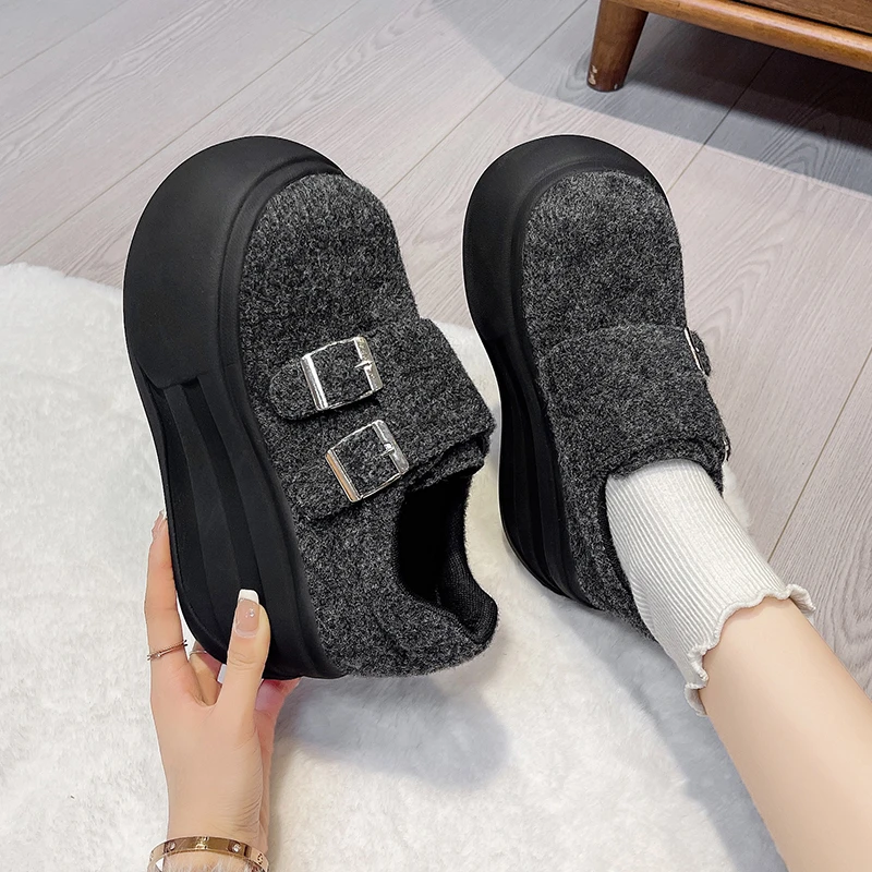 Zachte Verhoogde Hoogte Schoenen Vrouw 2026 Klompen Platform Loafers Bont Slip-on Nieuwe Creepers Winter Slip Op Verhoogde Interne Sneeuw