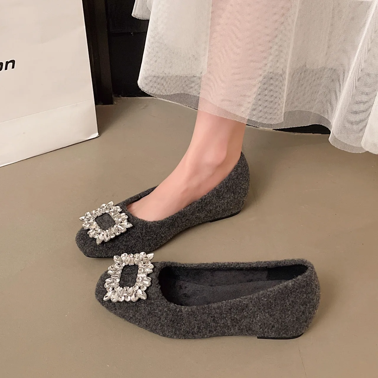 Gesp Ondiepe mond Kristallen damesschoenen Platform Damesschoenen Ballerina's Vierkante neus Instappers Verhoogde hoogte Strass Cl